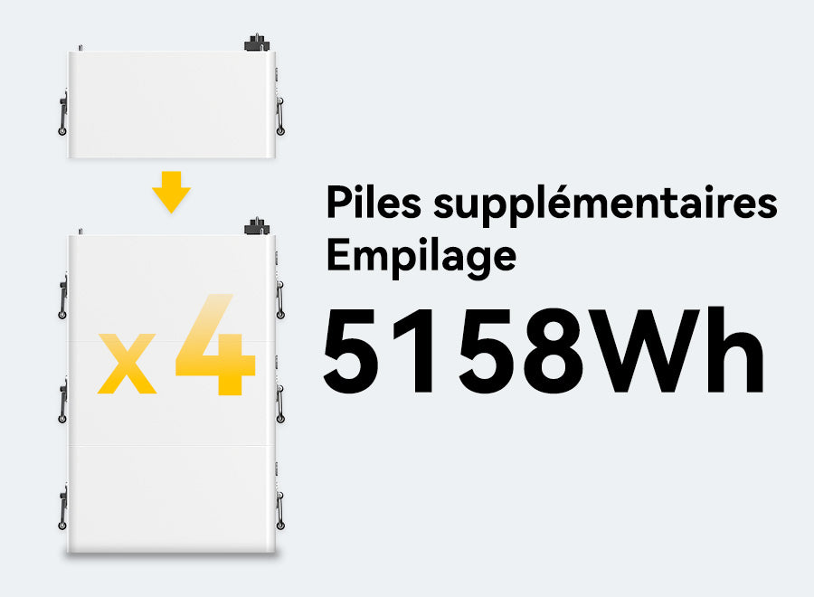 Empilez facilement des packs de batteries (vendus séparément) pour augmenter la capacité et répondre à vos besoins en énergie, que ce soit à la maison ou en déplacement.
